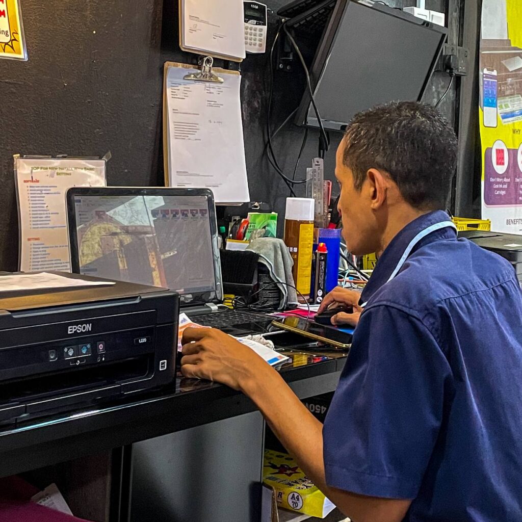 because dotnet karisma sells very affordable IT products and the repair work is very neat and organized so that customers are satisfied and can return for laptop or printer repairs.